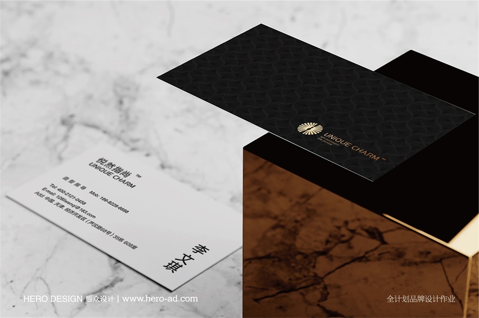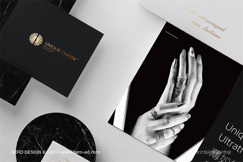 UNIQUE CHARM標(biāo)志整體透露著優(yōu)雅高貴的品牌氣質(zhì),契合品牌的輕奢理念,將女性的魅力與自信展現(xiàn)的淋漓盡致,為品牌形象的快速傳播奠定先決基礎(chǔ)。