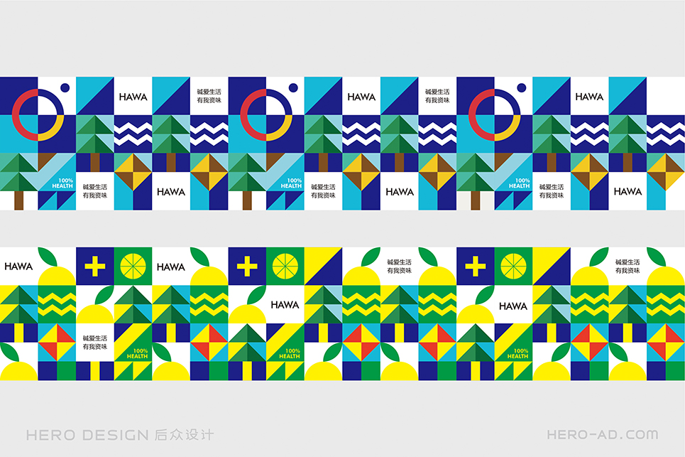在包裝層面,為了貫徹“堿愛生活 有我資味”的生活觀,在標(biāo)志所借鑒的至上主義表現(xiàn)形式中,結(jié)合簡資味蘇打水極致、簡約、自然、健康的品牌定位和目標(biāo)消費(fèi)者生活態(tài)度,將展示自然生態(tài)的相關(guān)元素融入其中,森林高山、原野河流、陽光云霧、海闊天空……通過對這些元素進(jìn)行幾何化抽象處理,得到獨(dú)屬于簡資味的超級符號專屬圖形,并在所有的包裝、物料中一以貫之。最終與消費(fèi)者形成共鳴,從而能夠使消費(fèi)者對其產(chǎn)生獨(dú)特的情感利益,完成品牌忠誠度的打造。
