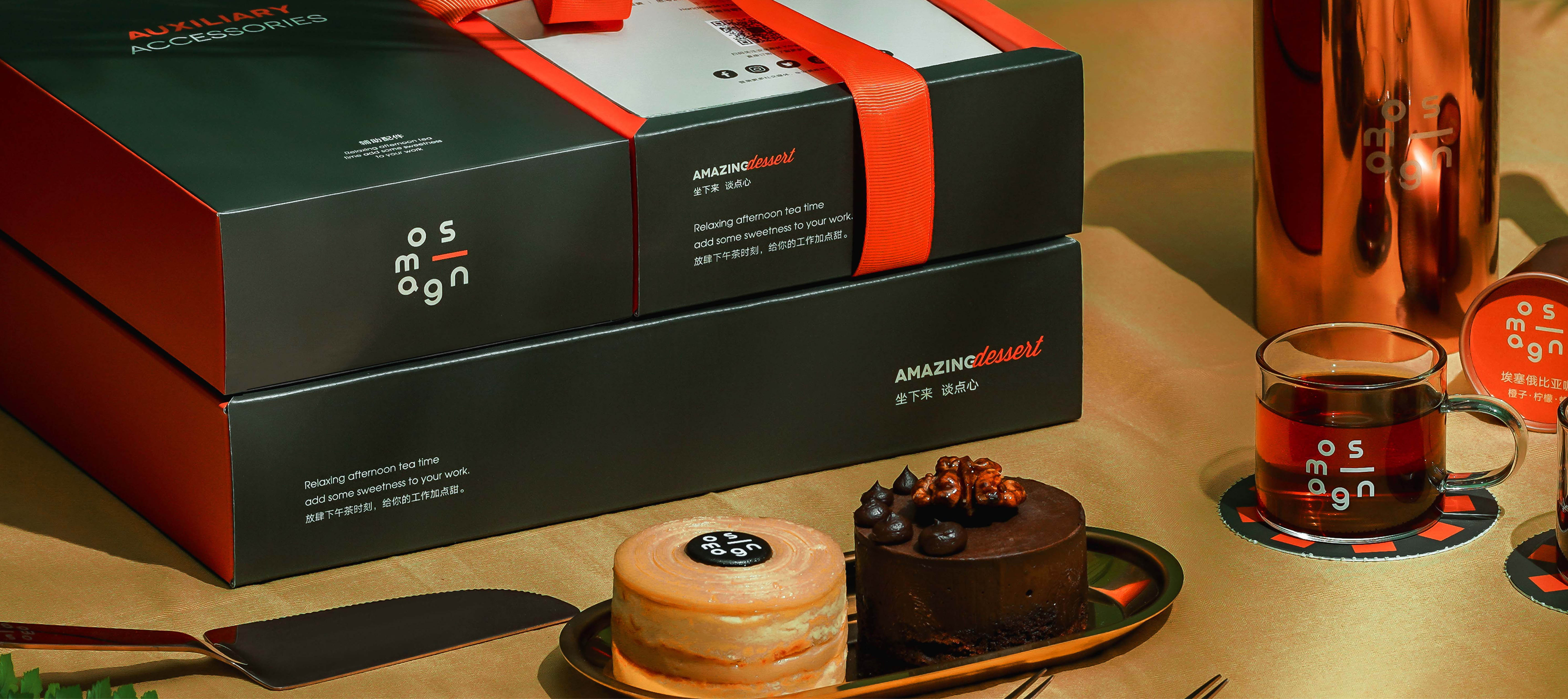 隨產(chǎn)品附贈(zèng)的食用工具配件以單獨(dú)包裝盒體呈現(xiàn),與產(chǎn)品包裝盒并列放置,增加下午茶的食用儀式感,精致的定制金屬餐具更加凸顯品牌品質(zhì),隨食用工具附贈(zèng)的便利貼與濕紙巾,增加了更多產(chǎn)品之外的小驚喜,使消費(fèi)者在享用甜品的同時(shí),增強(qiáng)對(duì)品牌多維度的調(diào)性認(rèn)知。