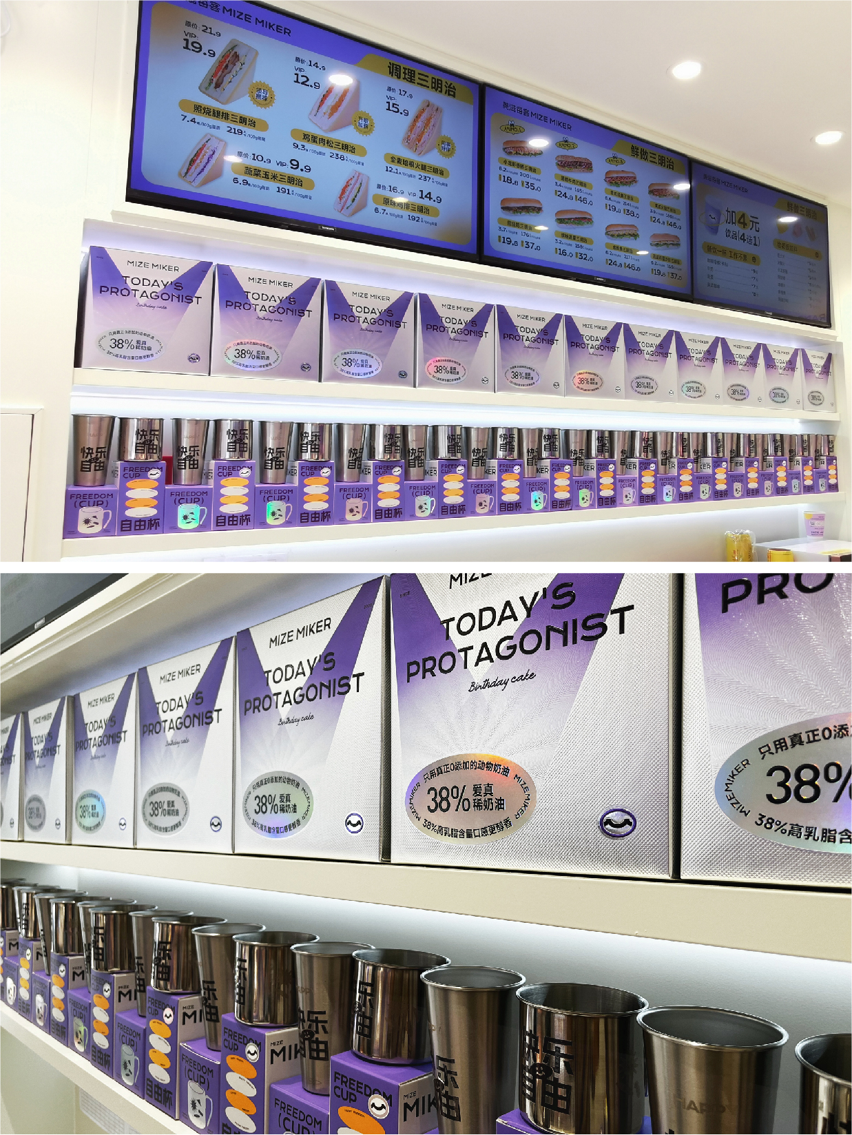受客戶委托,后眾為其進(jìn)行整體品牌策略形象升級,以“Office”的主題概念打開年輕人的消費(fèi)市場,品牌標(biāo)志以“M”字母入手,將其創(chuàng)作成為一個(gè)代表“微笑”的獨(dú)特符號,在門店消費(fèi)環(huán)境中,融入了“打工”、“內(nèi)卷”等當(dāng)下年輕人較為熱議的話題,利用詼諧自嘲的表現(xiàn)形式,有溫度有新意的去消解人們?nèi)粘9ぷ骼锏姆ξ逗途衿v。幫助品牌形成話題傳播,從而快速提升美滋每客品牌市場認(rèn)知、擴(kuò)大品牌影響力。