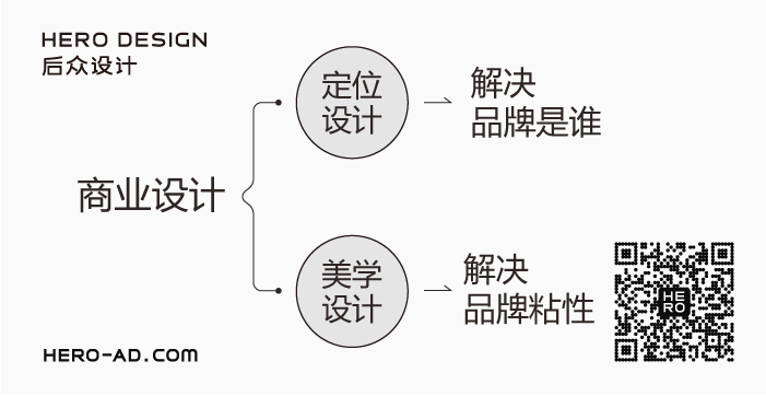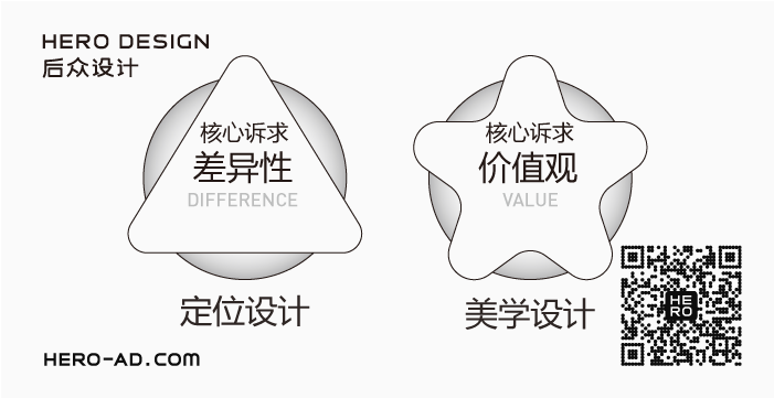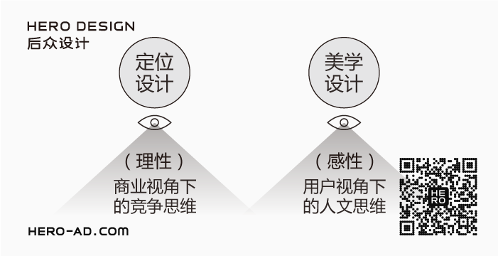 后眾倡導(dǎo)“定位設(shè)計(jì)”與“美學(xué)設(shè)計(jì)”并重的設(shè)計(jì)理念,認(rèn)為長(zhǎng)久且優(yōu)秀的品牌一定同時(shí)具有商業(yè)與人文價(jià)值,后眾將品牌打造拆分為二,一部分為注重定位與認(rèn)知、商業(yè)效果與市場(chǎng)效應(yīng)的理性設(shè)計(jì)即定位設(shè)計(jì),以策略性思維指導(dǎo)視覺(jué)內(nèi)容設(shè)計(jì),另一部分為注重文化傳達(dá)、傳播效應(yīng)與品牌粘性打造的感性設(shè)計(jì)即美學(xué)設(shè)計(jì),以美學(xué)經(jīng)驗(yàn)指導(dǎo)視覺(jué)內(nèi)容表現(xiàn)。