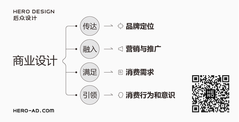 后眾認(rèn)為品牌商業(yè)設(shè)計(jì)即是實(shí)用設(shè)計(jì),服務(wù)于品牌塑造和生長的全周期,是以為品牌創(chuàng)造商業(yè)價(jià)值、積累品牌資產(chǎn)為目標(biāo)的商業(yè)行為。品牌商業(yè)設(shè)計(jì)要融入品牌的營銷與推廣過程,并做到滿足現(xiàn)狀受眾的消費(fèi)需求的同時(shí)引領(lǐng)消費(fèi)行為及消費(fèi)意識(shí)。
