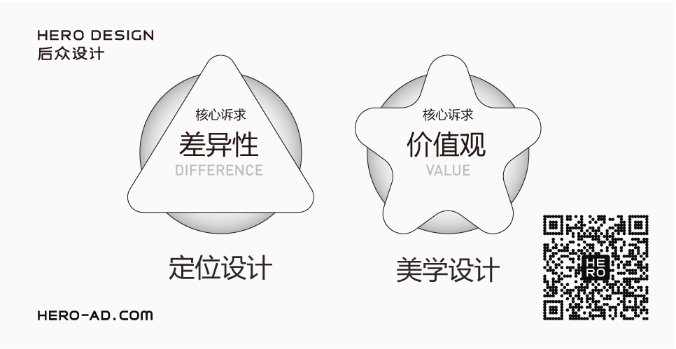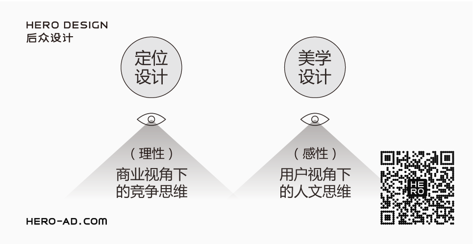 后眾倡導(dǎo)“定位設(shè)計(jì)”與“美學(xué)設(shè)計(jì)”并重的設(shè)計(jì)理念,認(rèn)為長久且優(yōu)秀的品牌一定同時(shí)具有商業(yè)與人文價(jià)值,后眾將品牌打造拆分為二,一部分為注重定位與認(rèn)知、商業(yè)效果與市場效應(yīng)的理性設(shè)計(jì)即定位設(shè)計(jì),以策略性思維指導(dǎo)視覺內(nèi)容設(shè)計(jì),另一部分為注重文化傳達(dá)、傳播效應(yīng)與品牌粘性打造的感性設(shè)計(jì)即美學(xué)設(shè)計(jì),以美學(xué)經(jīng)驗(yàn)指導(dǎo)視覺內(nèi)容表現(xiàn)。